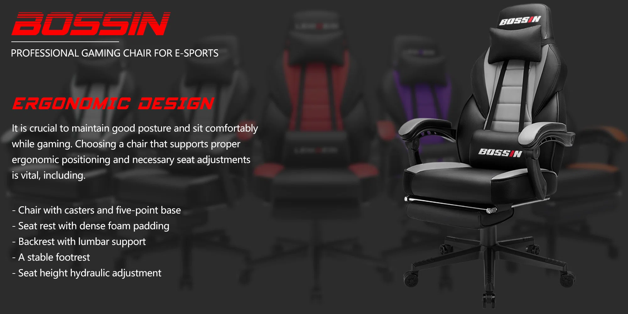 • BOSSIN Gaming Chairs with Footrest, Ergonomic Computer Game Chairs with Lumbar Support