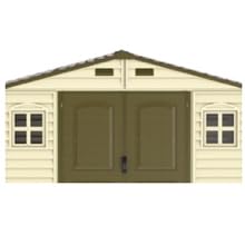 The WoodSide 10.5 x 8 vinyl shed adds elegance to any outdoor setting.