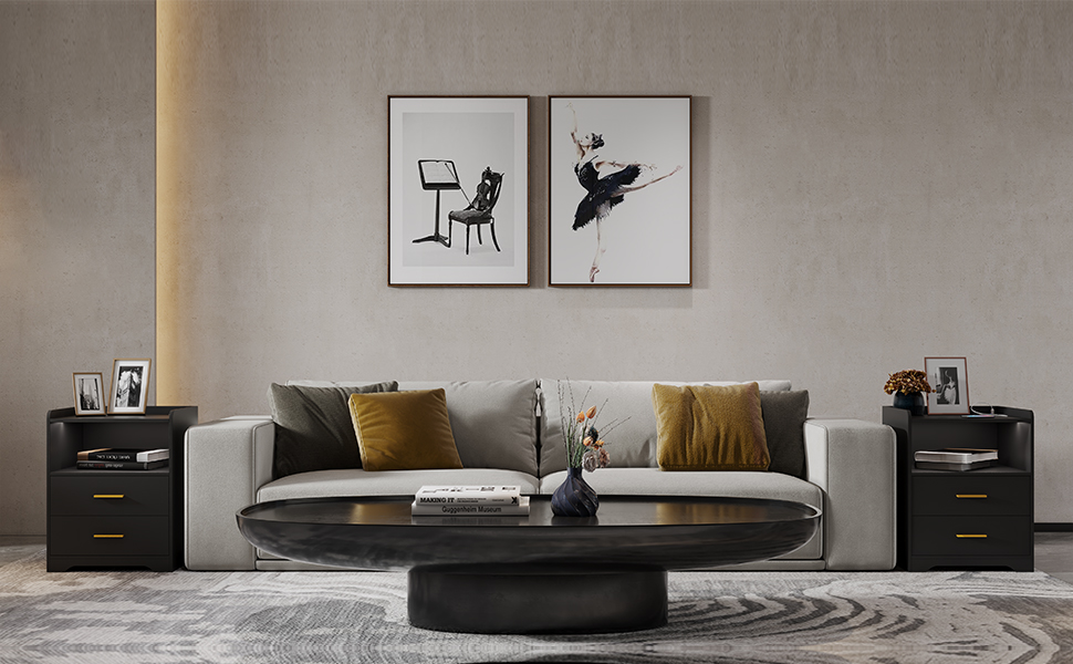 DNBSS Modern Black Night Stand for Living Room or Bedroom