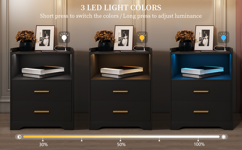 Our bedside table comes in 3 colors of atmospheric light(Blue Light/Warm Light/White Light), it's beautiful and stylish no matter day or night! Have a side table like this, it will catch everyone's eyes and make your friends, families, or colleagues envious.