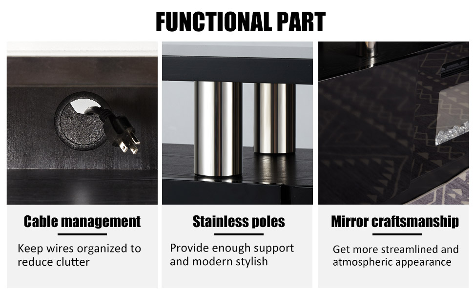 • Two tier design & 4 stainless supported open storage shelves hold kinds of media tools or decorations, making the TV console more tidy and personalized. 2 large cabinets provide ample space for your cherished CDs, books, etc.